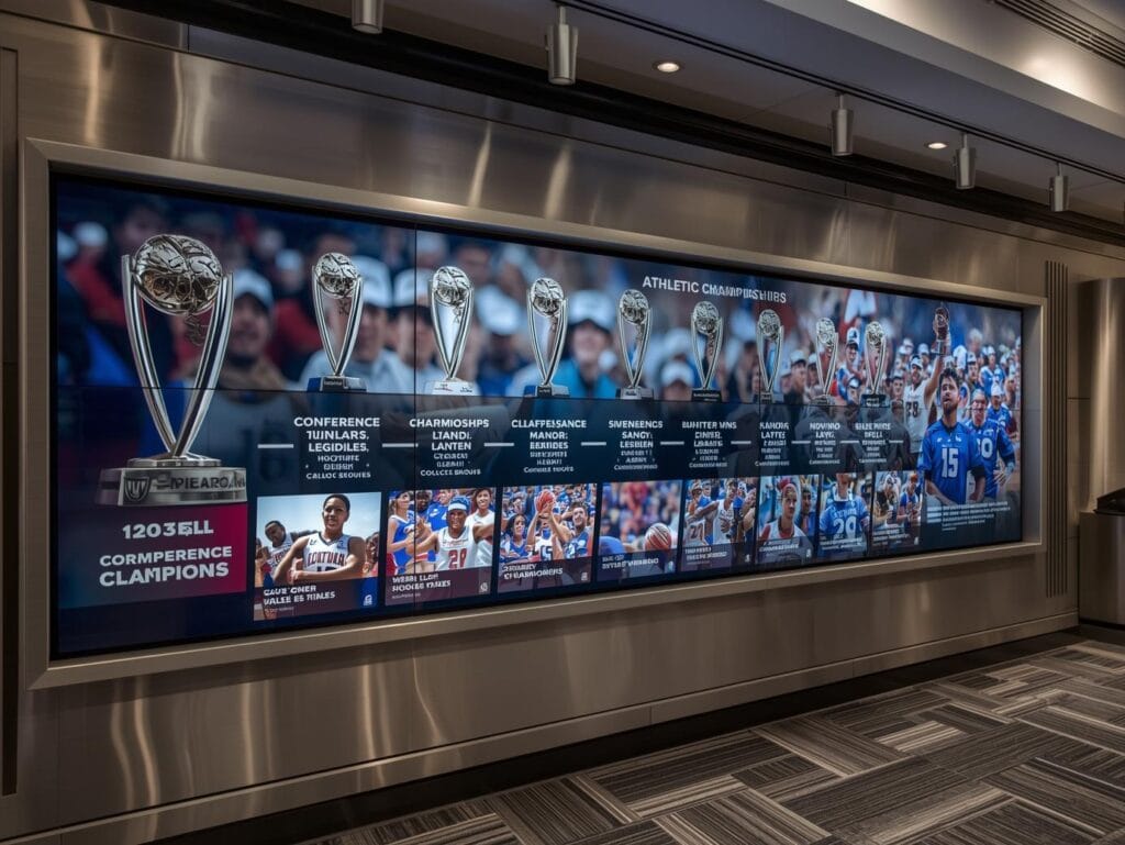 Athletic programs struggle to effectively celebrate achievements, recognize donors, and maintain engagement with students, alumni, and fans. Traditional trophy cases and static displays can’t deliver the dynamic, interactive experiences that inspire school spirit and drive support.
